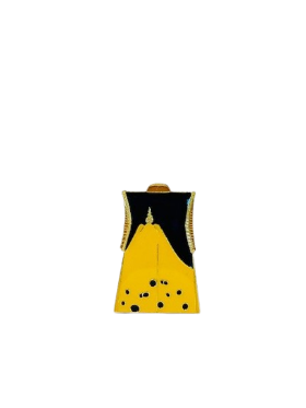 ミニサイズの陣羽織ピンバッジは、とてもかわいく仕上がっていますが、黒と黄色の鮮やかな発色、特徴的な御神火部分、ネックライン・襟ぐりにある西洋風のフリルの部分が本当に細かく再現されており、歴史のロマンを感じられる深みのある商品です。