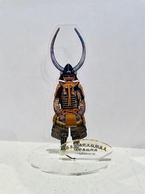 浅野長政所用と伝わる大阪城天守閣蔵・茶糸威桶側五枚胴具足(ちゃいとおどしおけがわごまいどうぐそく)が、手の平サイズのアクリルスタンドになりました。